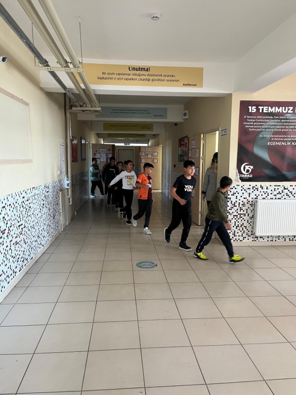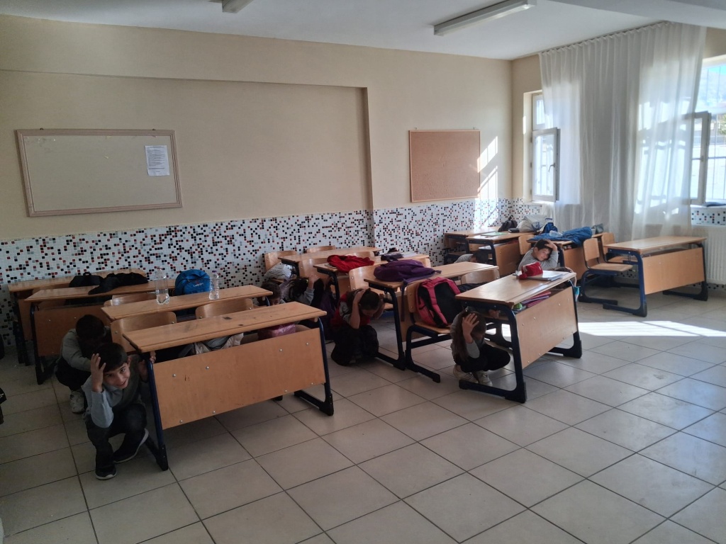 Tüm Türkiye ile aynı anda okulumuzda gerçekleştirilen deprem tatbikatını 70 öğrenci 7 öğretmen ve 1 personel ile gerçekleştirdik. Deprem tatbikatı sırasında okulumuz 1 dakika 34 saniye'de boşaltılmıştır.